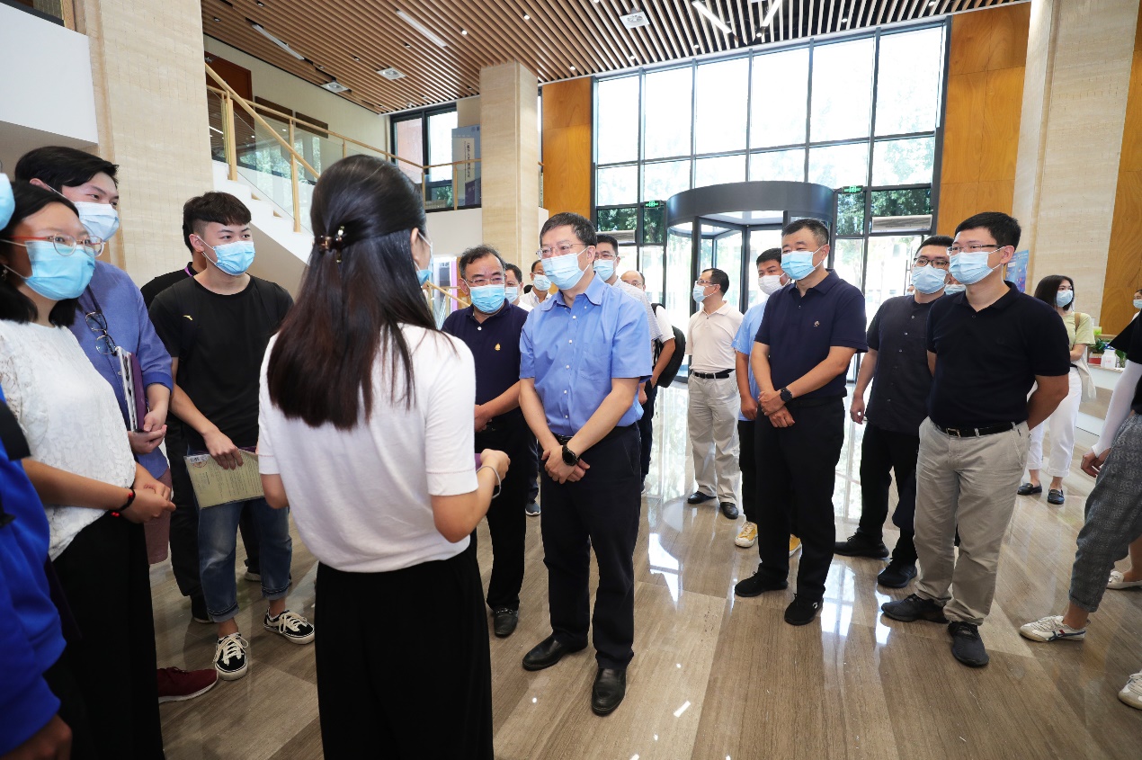 校党委书记陈旭与来自武汉的环境学院新生交流