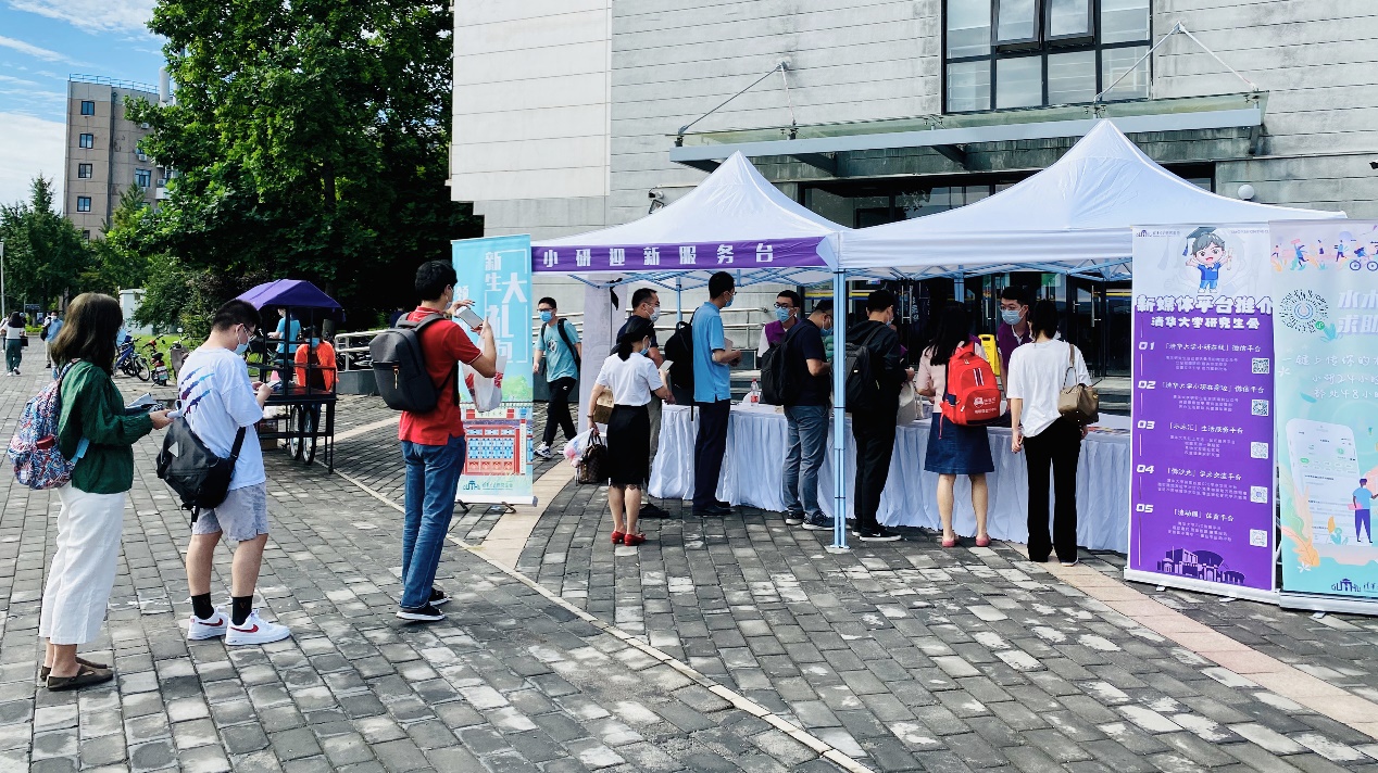 紫荆22号楼学生公寓前,国际学生迎新工作有条不紊地开展。