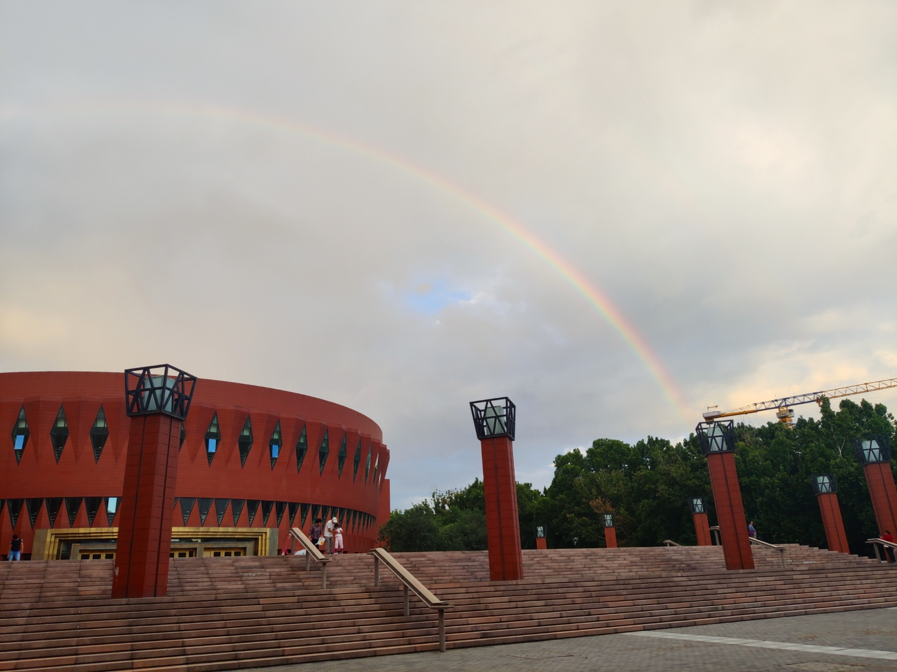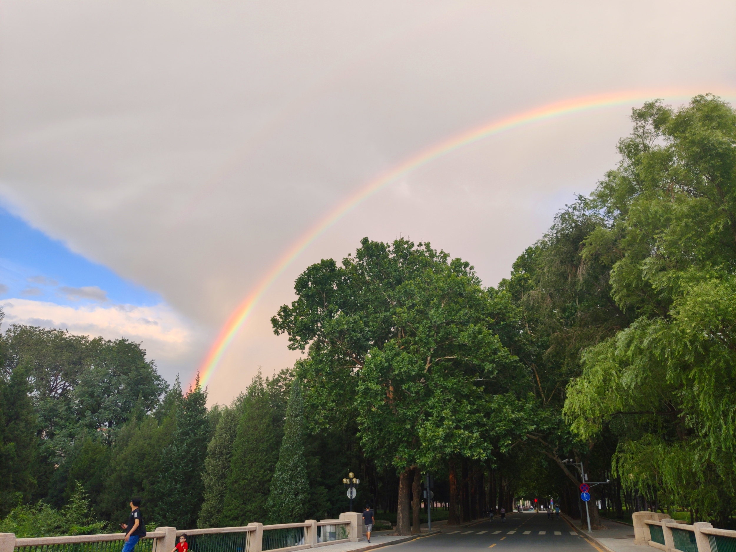 短短的一场秋雨后,一轮彩虹豁然出现在清华园上空。绚丽的彩虹和明媚的晚霞同时出现,吸引了不少师生用镜头留下难得的美景。