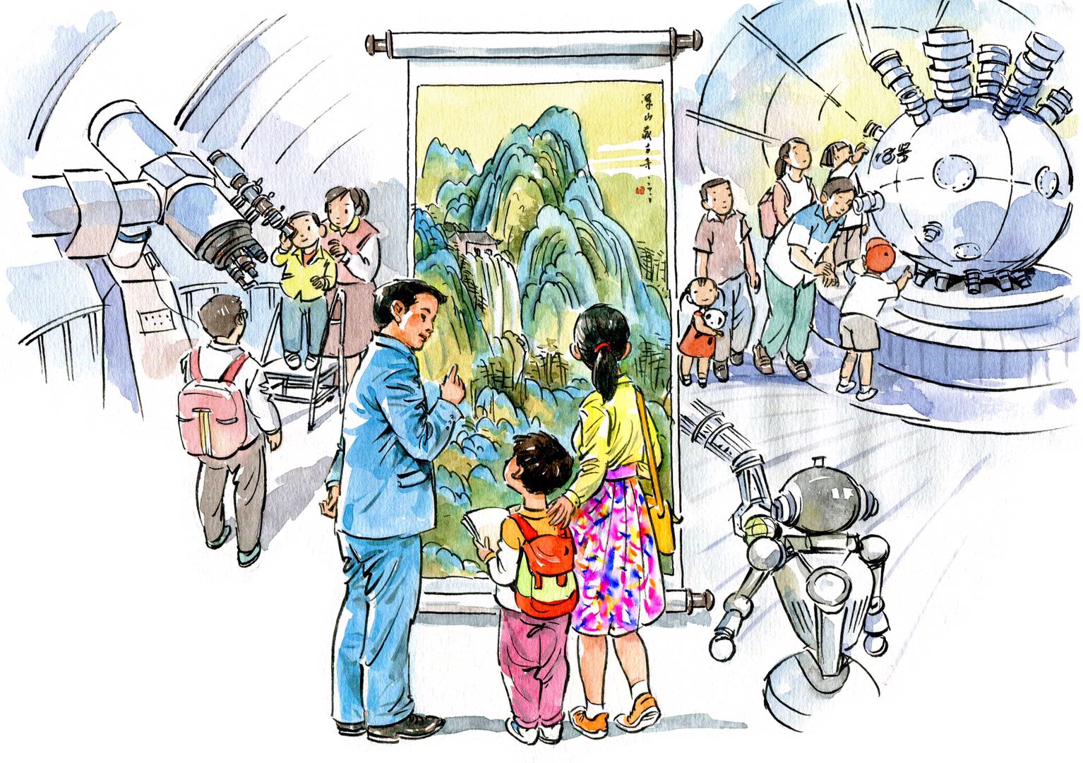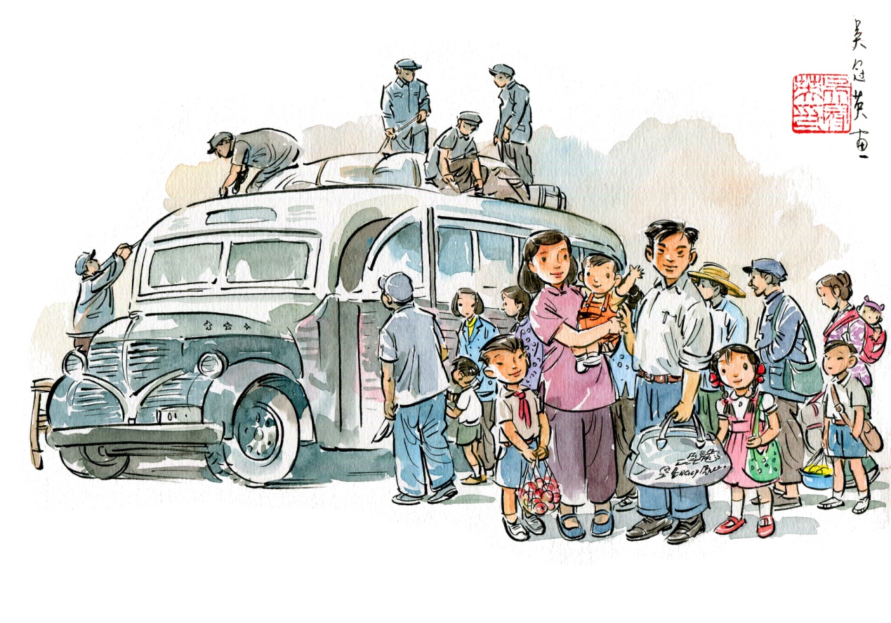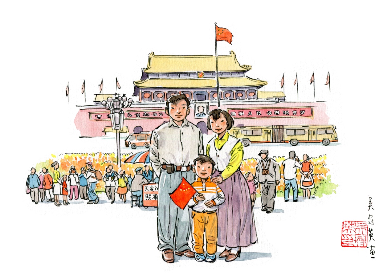 这组漫画是光明日报摄影美术部为迎接建国七十周年所作的特别策划,体现了艺术性与新闻性的完美结合。作品以轻松活泼的笔触,描摹不同年代中国家庭出游的温馨场景,反映了新中国成立70年来人民生活发生的日新月异的变化。作品主题鲜明,选取素材具有典型性,时代气息浓郁,朴素的生活情感、深深的自豪感都融入作品中,引发共鸣,亲切感人。
