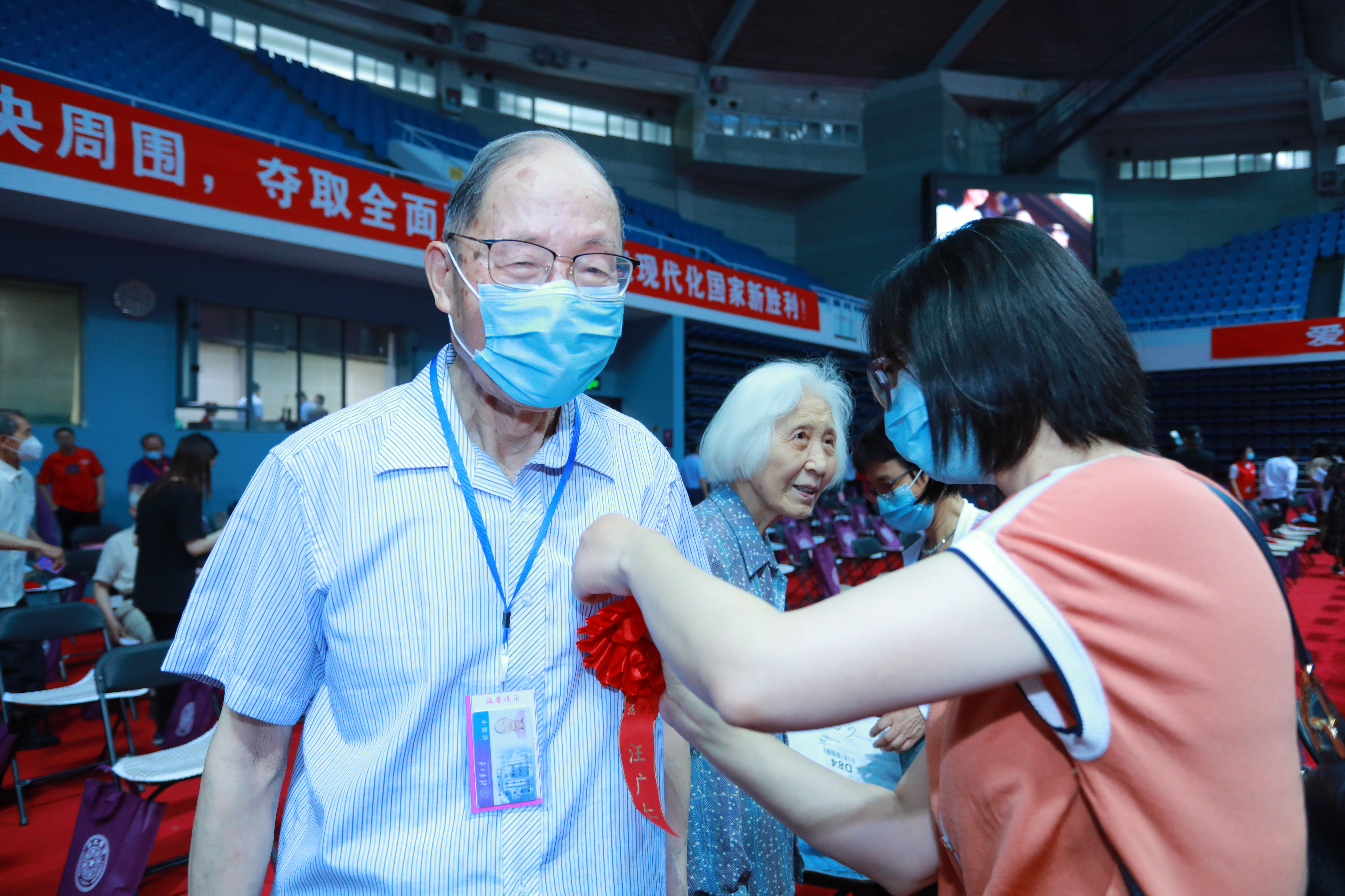 6月16日上午,华体会娱乐平台“光荣在党50年”纪念章集中颁发仪式在综合体育馆举行。光荣授章、重温入党誓词、齐声高唱《没有共产党就没有新中国》……纪念章颁发仪式庄重而简朴。光辉的纪念章代表着以习近平同志为核心的党中央的关怀和温暖,映照着老党员为共产主义事业奋斗终身的庄严承诺。