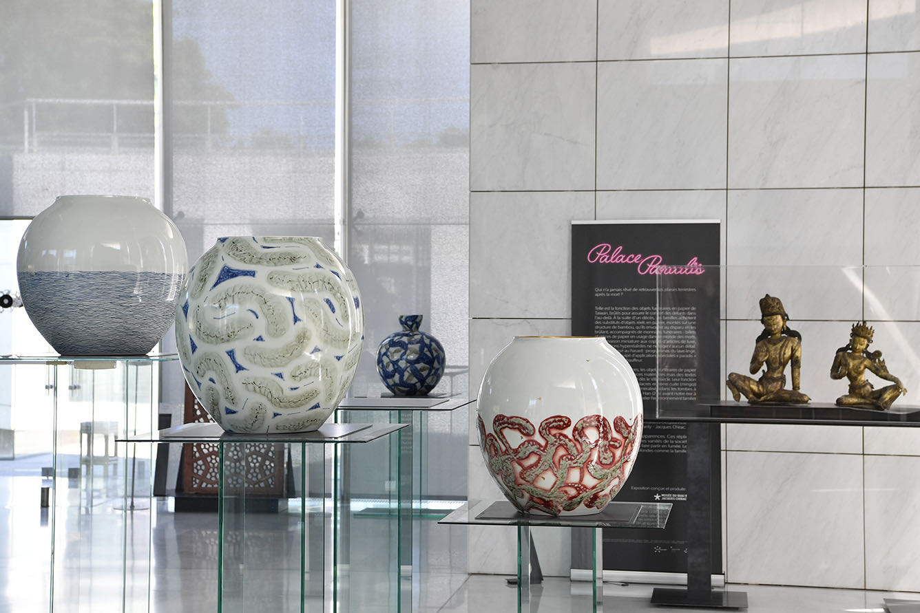 法国尼斯亚洲艺术博物馆《心手相应——白明陶艺与绘画作品展》展览现场。此展也将是该馆第一次将当代艺术家的作品陈列至中国馆、日本馆、印度馆、东南亚馆和主题展圆厅,与博物馆收藏的亚洲历代珍藏共同向世人展示。这也是白明近十年来在世界各重要博物馆的个展中,博物馆与策展人将他的艺术融入整个亚洲艺术史的脉络来研究的一个展览。