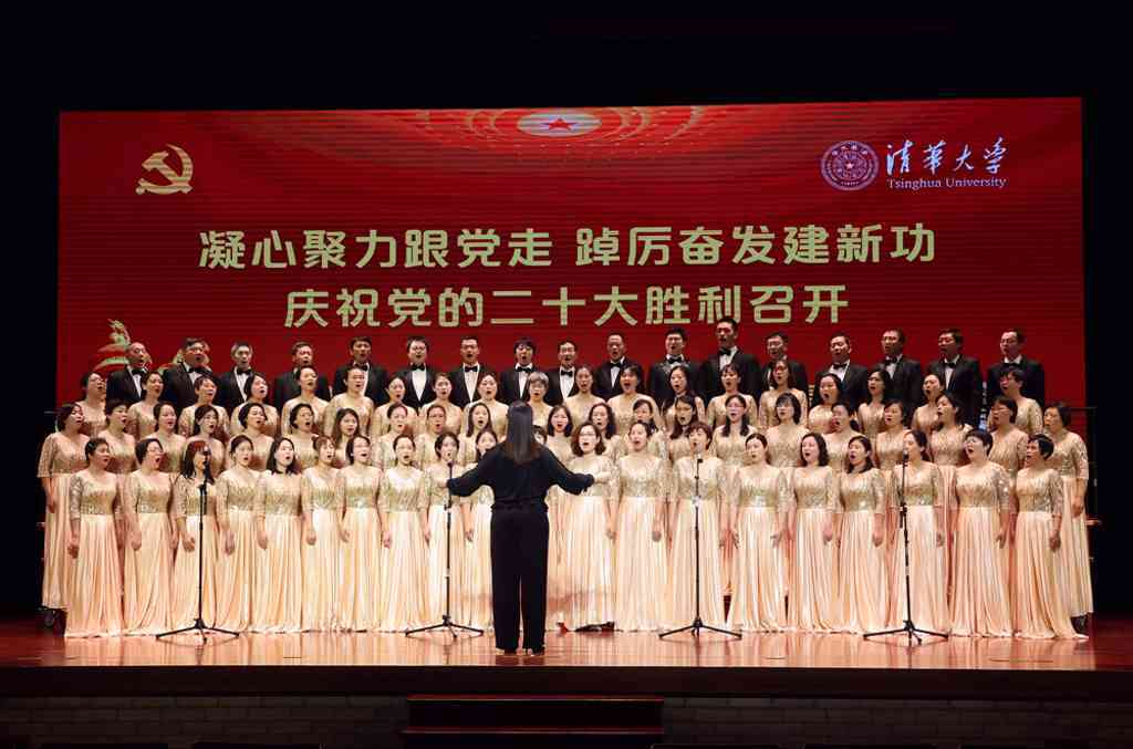 歌伴舞《映山红》《灯火里的中国》《一起向未来》,舞蹈《春风十万里》,优美的舞姿表达了向历史致敬、向未来出发的美好向往和无限希望;诗朗诵《青春的模样》描述了六十多年前,核研院一群年轻人怀着以身报国的理想,知难而进、众志成城,在燕山脚下开启清华核能人的奋斗历程;诗朗诵《喜庆二十大 开启新征程》表达了“愿以吾辈之青春,护我盛世之中华”的决心;原创话剧《紫藤花开》展现了一代代道口人志愿将“培养金融领袖,引领金融实践,贡献民族复兴,促进世界和谐”的使命发扬光大的志向。