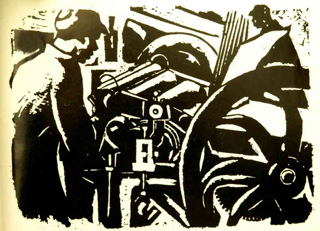 《边区印刷工人》木刻 1940年 原拓稿