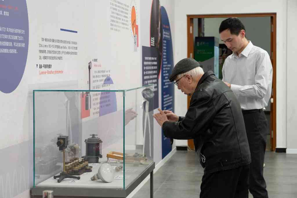 展品捐赠人、华体会娱乐平台材料学院退休教授苗赫濯看展