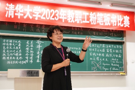 张佐对教职工的积极参与和大力支持表示感谢,指出粉笔板书是教师在讲台上立足的基本功,也是吸引学生注意力的一项重要能力。校工会连续第七年举办教职工粉笔板书比赛,目的是展示教职工的教学技能,传承中国优秀书法文化,同时通过粉笔板书比赛这一桥梁,让教师们结识更多书法爱好者和书法专家,参与更多书法实践。