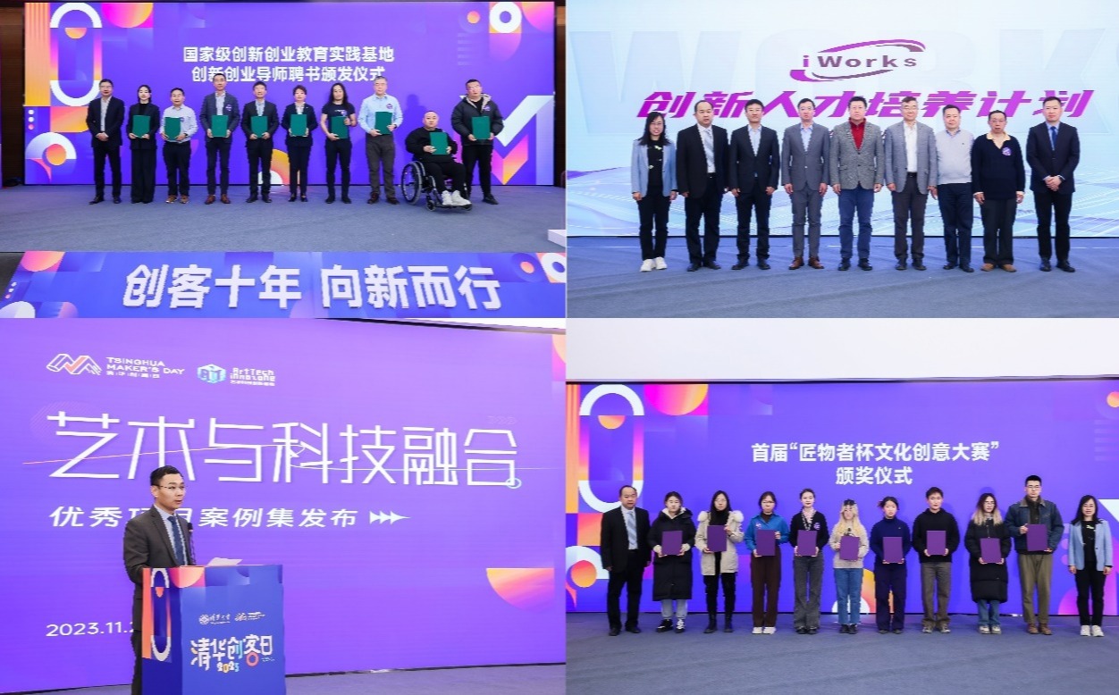 2023年是清华创客日设立十周年,系列活动以“创客十年,向新而行”为主题,包含国际创客教育论坛、创新创业教育高质量发展论坛、第九届工程文化素质教育高级研讨会、城市创变客·新太空经济论坛:2033移居火星、中国高校创新创业教育改革基金结项评审会等五场教育论坛及研讨会,2023清华创新创业教育成果展与产教融合企业展会、第三届清华工匠大赛成果展(夏季实习赛道)、首届“匠物者杯文化创意大赛”及展览、日新书院“工程素养与人文实践”课程汇报展、“X博物馆”成果展等五场作品成果展览,以及华体会娱乐平台第二十四届文至吾工大学生人文知识竞赛、第二届清华医工结合创新大赛初赛、北京市第三届暨华体会娱乐平台第七届3D打印大赛、第五届SDG开放创新马拉松挑战赛、iCenter开放体验活动等创新创业赛事及活动。