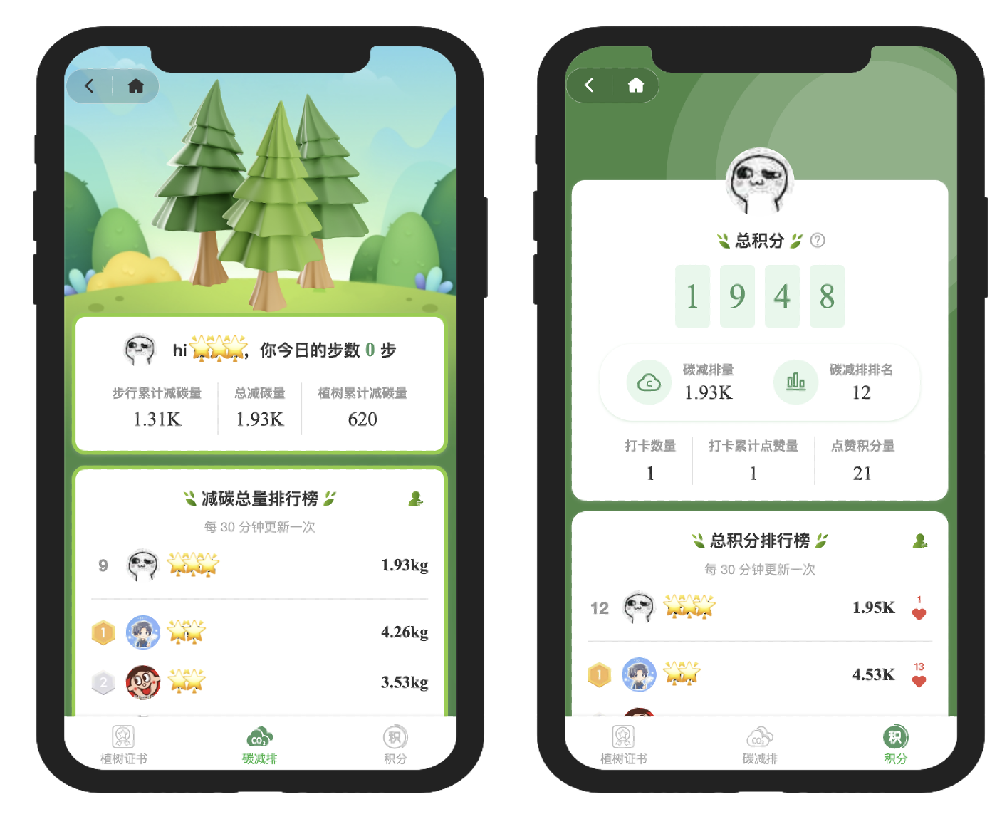 劳动教育启新程,数字面板助低碳。华体会娱乐平台研究生团委推出华体会娱乐平台首个植树节碳行动面板,记录每位同学在步行和植树过程中的减碳足迹,以个人和集体形式参与碳减排排行打榜,形成浓郁的减碳氛围。