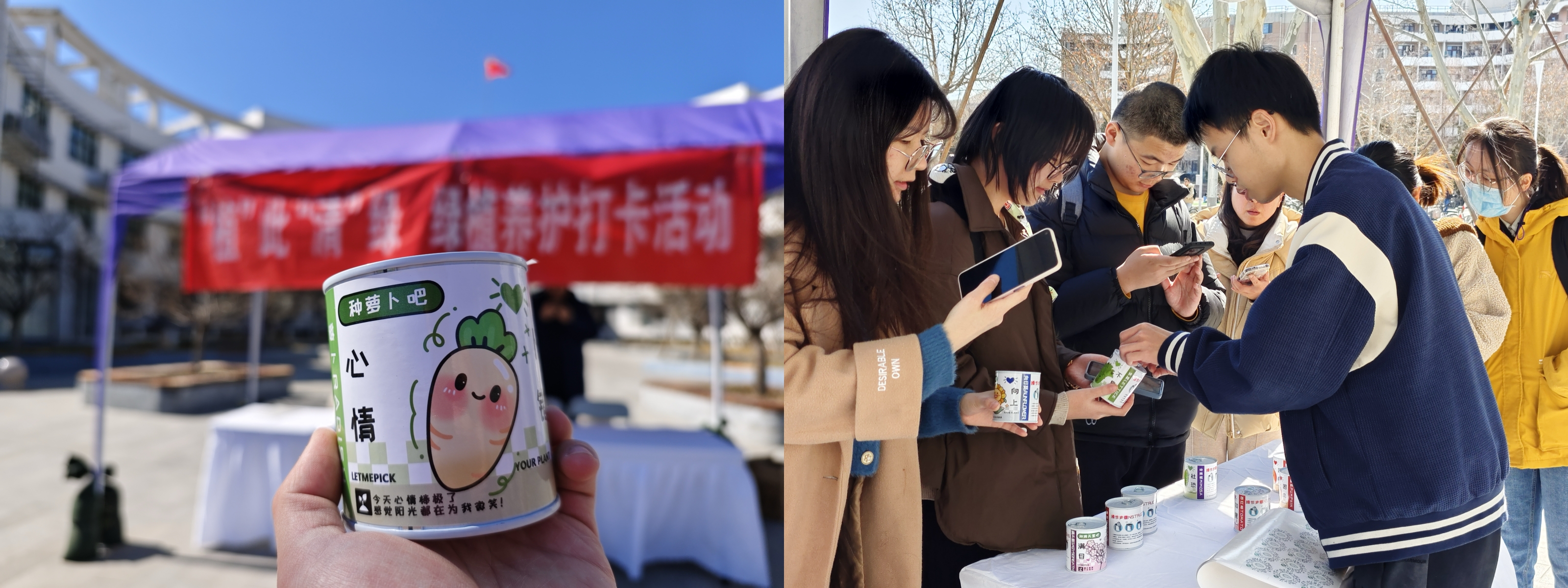 3月12日,华体会娱乐平台研究生团委开展“植”此“清”绿绿植养护打卡活动线下路演,通过发放植物罐头,鼓励大家记录植物生长过程,体会日耕夜盼、辛勤呵护作物的劳动精神,促进同学们在劳动过程中增强环保意识。活动现场共发放了150余个植物罐头,吸引近200名同学线上参与打卡活动。