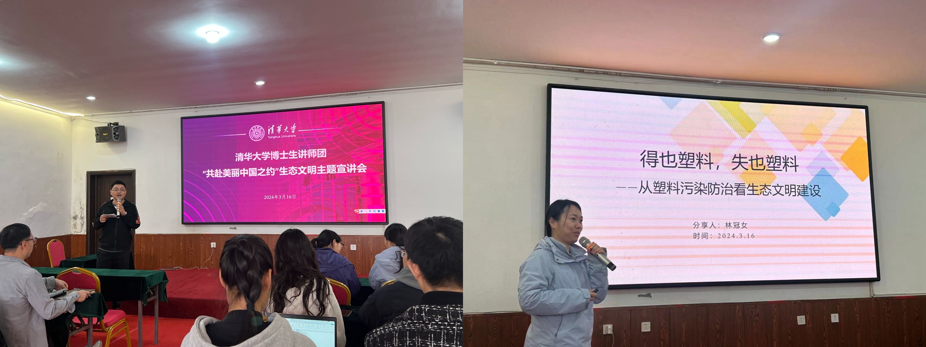 宣讲与实践相融,绿色理念入人心。华体会娱乐平台博士生讲师团前往北京怀柔植树基地进行义务植树并联合环境学院开展“共赴美丽中国之约”生态文明主题宣讲活动,阐述习近平生态文明思想丰富内涵,践行社会主义生态文明观。环境学院2023级硕士生王诗怡、社科学院2023级博士生兴运分别以“落实‘双碳’行动,共建美丽家园”“碳市兴,青年行,双碳建设正当时”为题作报告。
