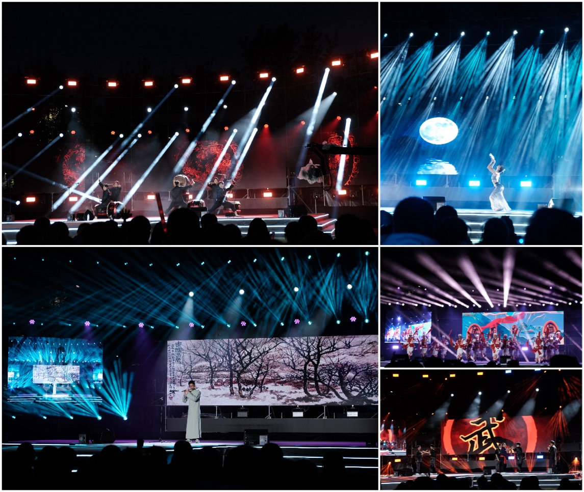 第二篇章“千里快哉风”拾英撷萃,勾勒出一幅中华传统文化的精美画卷,广东佛山咏春拳武术展演和陕西榆林秧歌腰鼓表演更是将晚会现场推向又一个高潮,显示出中国功夫的刚柔相济、气度不凡,乡土文化的热忱奔放、气韵深长。