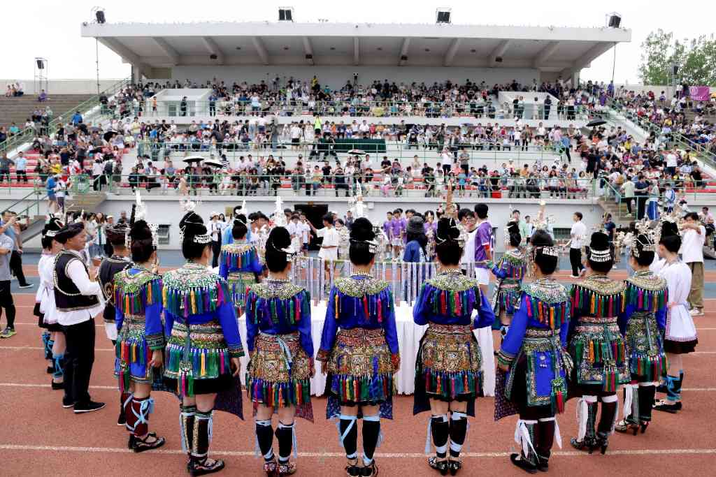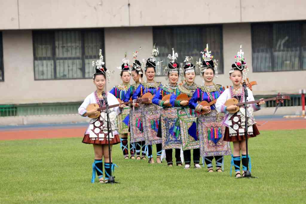 球场外,贵州美食文化、非遗文化、特色文旅等近二十个展位为师生们提供米粉、清白茶等特色小吃品尝,以及乐器、服饰、蓝染、蜡染等非遗文化体验,充分展示贵州的文化特色。现场还设置了学唱侗族大歌、学跳竹竿舞等游戏环节,使得师生们能够深度体验贵州的文化魅力。