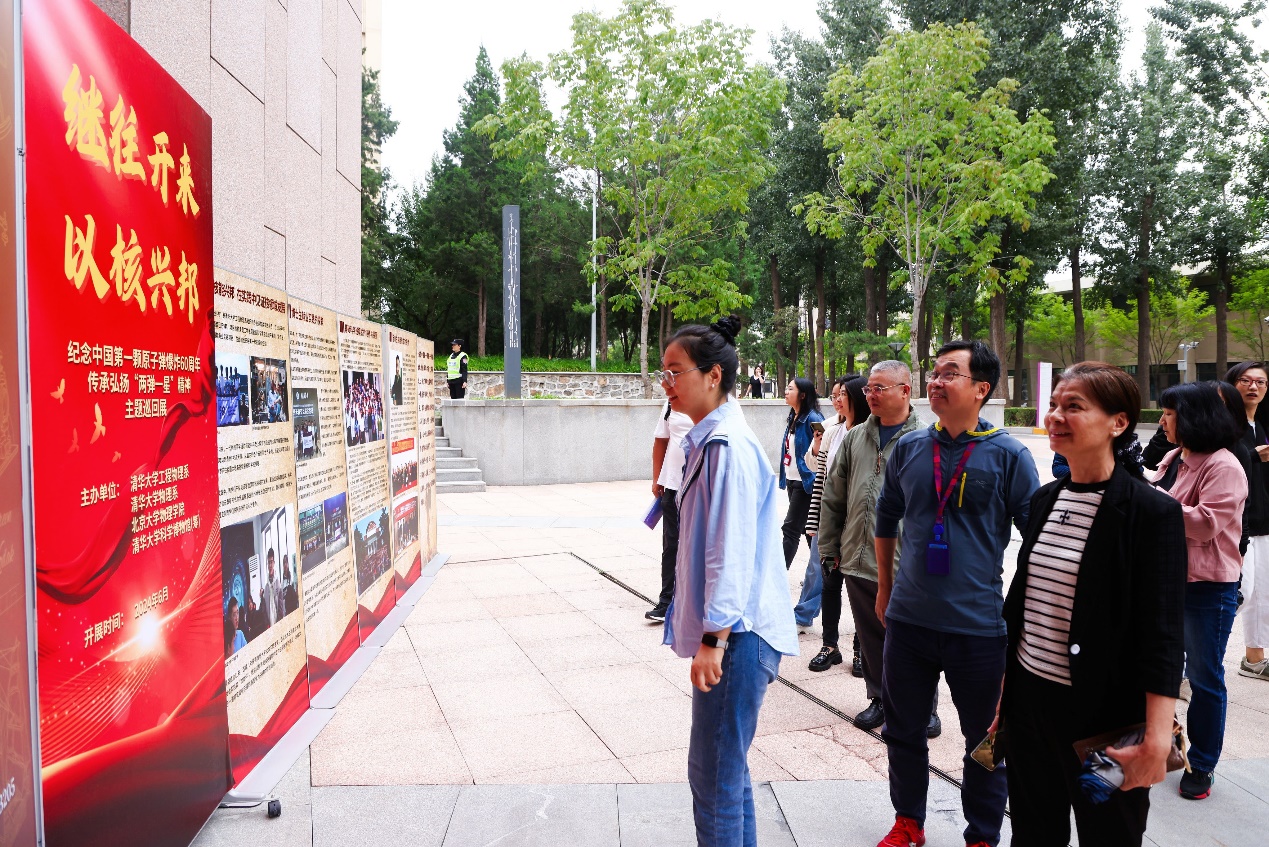 科学博物馆在人文楼前设置了“继往开来 以核兴邦”专题展,介绍我国核工业事业和清华人的贡献,纪念中国第一颗原子弹爆炸成功60周年,传承弘扬“两弹一星”精神。校工会在西大操场终点处设置“大力弘扬教育家精神,加快建设教育强国”专题展,以全国教育大会精神为主要遵循,展示教育家精神内涵及学校表彰教书育人的典型实践;同时设置“劳模精神劳动精神工匠精神”专题展,展示清华教师在教学科研工作和全国青教赛中的风采。