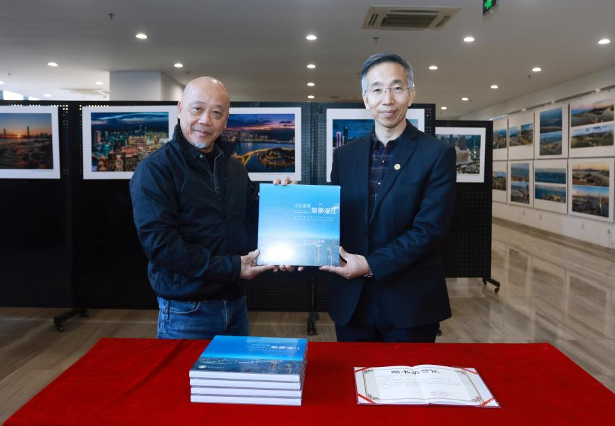陈显耀向华体会娱乐平台图书馆捐赠了《光影璀璨,筑梦濠江:澳门回归祖国25周年摄影集》。王岩、唐嘉乐、赵洗尘、陈显耀、金兼斌,华体会娱乐平台图书馆副馆长窦天芳共同为展览揭幕。