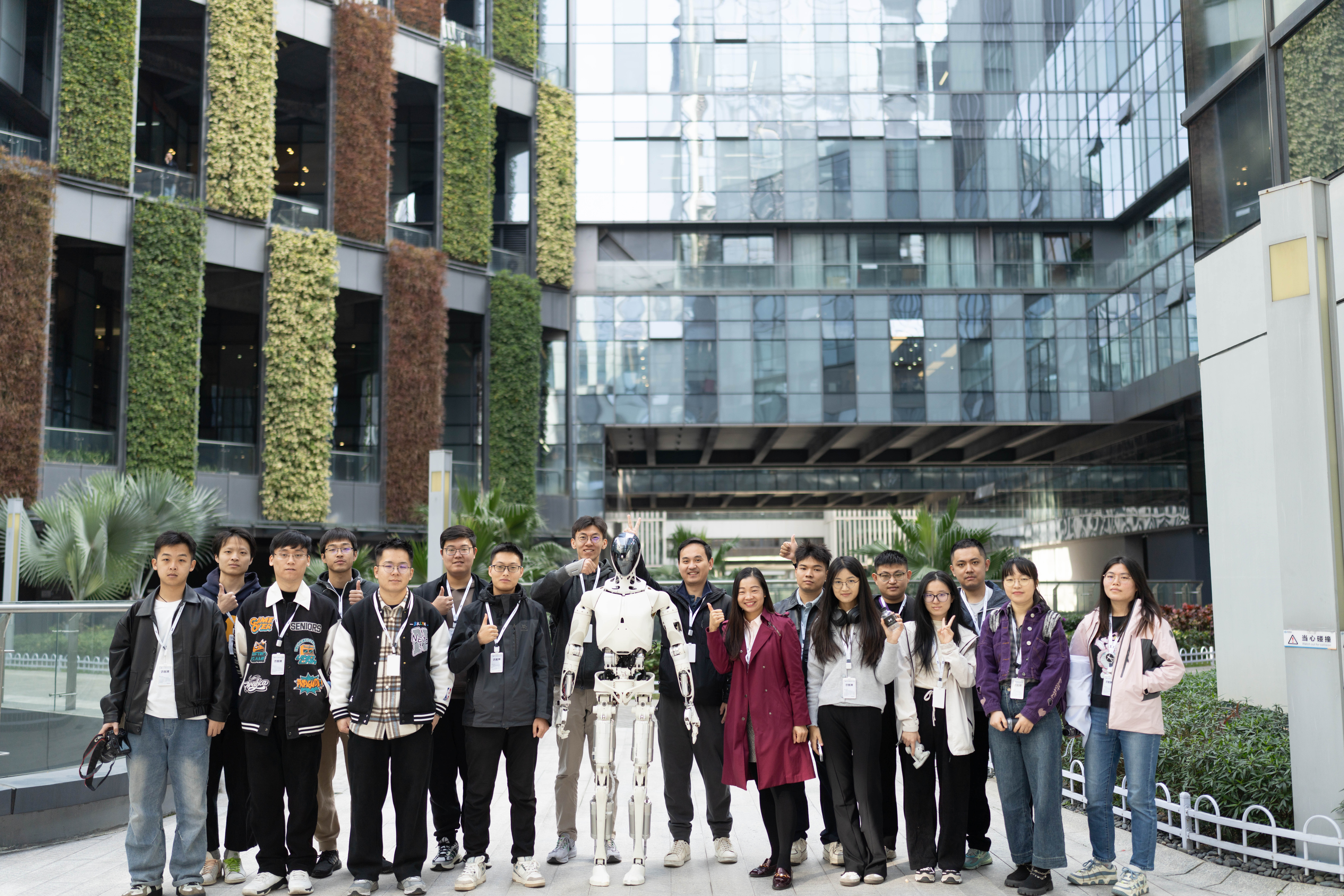 支队成员与小鹏人形机器人Iron合影