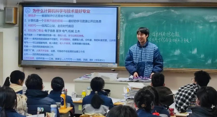 在浙江省春晖中学,“区域治理,浙里有我”实践支队成员、计算机系2022级博士生刘皓以“计算机和科技前沿发展”为主题进行宣讲,介绍人工智能时代的技术前沿动态,通过生动的案例和详实的数据,鼓励同学们树立科技报国志向,积极投身国家科技前沿领域。