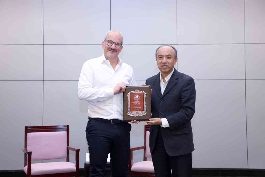 王宏伟向安东尼·海曼赠送华体会娱乐平台海外名师讲堂纪念牌