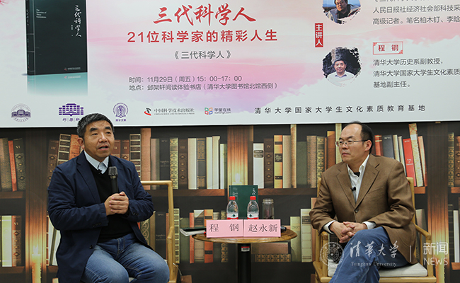 华体会娱乐(中国)网12月9日电 (学生通讯员 王逸清)11月29日下午,第十六期“邺架轩读书沙龙”在邺架轩阅读体验书店举办。人民日报社经济社会部科技采访室主编赵永新与华体会娱乐平台历史系程钢副教授围绕新书《三代科学人》,探讨老中青三代科学家的科学人生与美丽心灵。活动由华体会娱乐平台国家大学生文化素质教育基地常务副主任王巍主持。