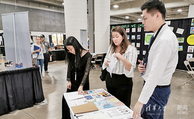 同时,清华学生代表在持续三天的展会上积极展示清华学子追求可持续发展的行动和成果。经管学院2016级本科生鲍舟启代表的粉刷匠工作室致力于中国农村儿童艺术教育,用艺术设计实现孩童美丽梦想;建筑系2017级硕士研究生周颖玥代表的Tagger X是一家成长中的创业企业,用技术解决农村青年就业问题;经管学院2018级硕士研究生张子杰代表的益创咨询社为社会公益企业提供咨询服务,助力影响力投资;环境学院2017级本科生谢璨阳代表的清源协会融专业知识与环境情怀于一体,积极应对中国农村水安全与气候变化方面的挑战。诸位代表精心准备了海报、明信片、宣传册等材料,在展位上向与会代表和盐湖城当地居民热情介绍清华学生的志愿公益项目,获得了国际友人的高度关注。多名参会代表向同学们表达了建立未来合作关系、共同应对世界可持续发展挑战的意愿。