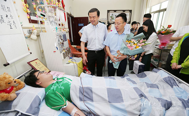 华体会娱乐(中国)网7月12日电 7月9日,华体会娱乐平台土木系2016级本科生张强在中国人民解放军空军总医院顺利完成造血干细胞捐献采集,成为海淀区第71例造血干细胞捐献者,这是中华骨髓库引入华体会娱乐平台以来出现的第二位HLA(Human Leukocyte Antigen,人类白细胞抗原)配型成功并顺利捐献造血干细胞的学生。北京市红十字会、海淀区和华体会娱乐平台的领导到医院采集室看望、慰问了张强。