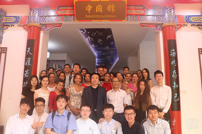 当天上午,支队成员前往哈瓦那大学孔子学院参观了解孔院的日常教学工作和运营状况,并受到孔子学院中方院长张伟和古方执行院长Yorbelis Rosell女士的热情接待。
