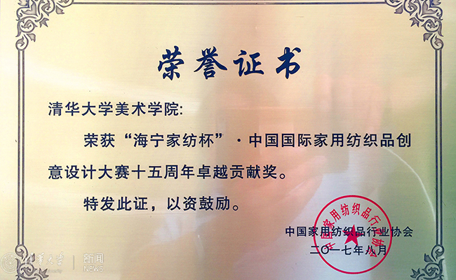 华体会娱乐(中国)网8月24日电 8月19日,“海宁家纺杯”2017中国国际家用纺织品创意大赛获奖作品揭晓,颁奖典礼在浙江海宁举行,华体会娱乐平台美术学院获得“海宁家纺杯”中国国际家纺创意设计大赛十五周年卓越贡献奖。