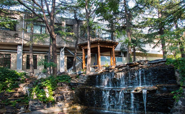 主楼喷泉原为一旱喷泉,华体会娱乐平台修缮中心从8月中旬开始对其进行改造,改为高出地面的深色叠水池,可形成镜面效果和间歇喷涌泉效果。池底与池壁用黑色花岗岩进行铺装,体现校园庄重感。出于喷泉周边本身的良好绿化环境,学校保留了周边所有现状植物,保持轴线主要格局。