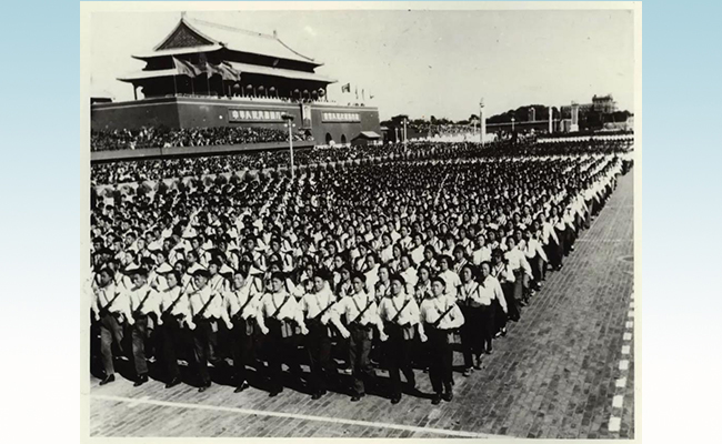 临时受命组建的“毛泽东思想标语”方阵的师生,是唯一由大一新生组成的方阵,只用了8天7夜的时间圆满完成训练任务,创造了群众游行的一个奇迹。