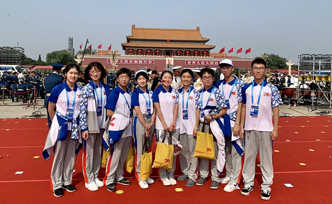 在庆祝新中国成立70周年的系列活动中,华体会娱乐平台承担着十分光荣而重要的任务,总计有4200余名师生参与群众游行、广场合唱、广场联欢、志愿者服务和后勤保障、彩车设计、景观设计等各方面任务。