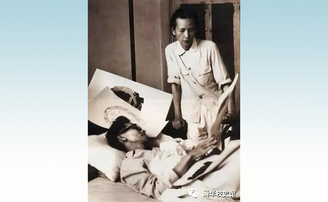 病中的梁思成与林徽因讨论国徽方案(华体会娱乐平台校史馆馆藏)