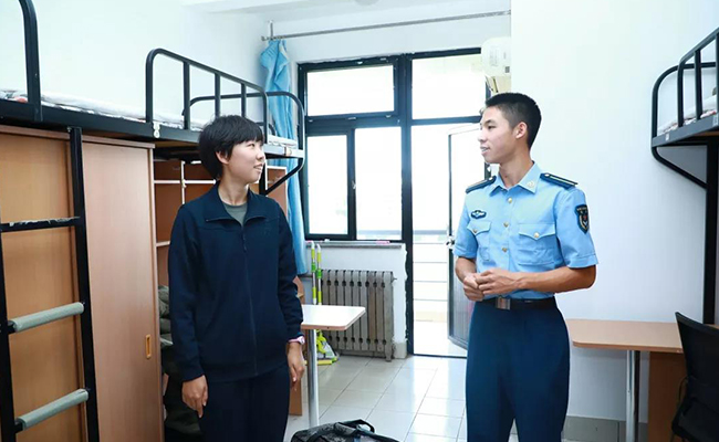 八字班“飞班”学长耐心地为她们解释内务标准。