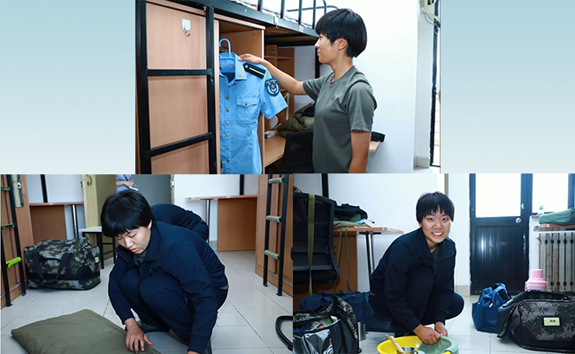 抵达宿舍后,姑娘们迅速收拾行囊,整理内务。