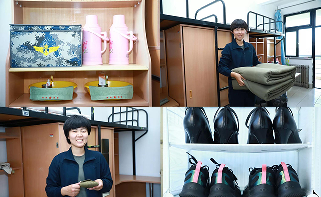 不一会儿,军被在她们手上变成了“豆腐块儿”,军装整齐地挂进了衣柜,脸盆、毛巾、水壶、鞋子也整整齐齐地码放在指定的位置。