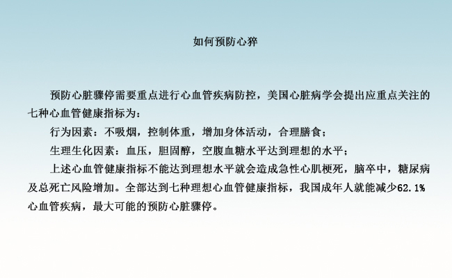 研究显示,若能在心脏骤停发作后最初3-5分钟实施治疗,存活率可提高70%以上。一个心脏骤停的患者,每提前除颤一分钟其存活率就增加了7-10%。