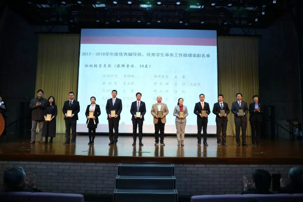 校党委副书记向波涛老师宣布了2017~2018年度优秀辅导员、优秀学生事务工作助理的表彰决定。