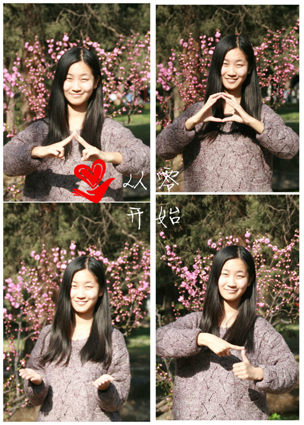 她和手语社的朋友们在人人平等的观念下,用聋哑人的方式——手语,也用自己的心灵,与他们进行着最真挚的沟通。她说:“大学在手语社的这几年,对我的人生观、价值观有着巨大的影响。”对那些她经常要接触的失聪朋友,从怜悯到慢慢理解,她为这个陪伴了她四年的“家”付出了许多,也同样收获了许多。