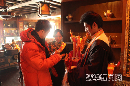 藏族同学还用藏历新年特有的习俗,手持“卓索切玛”木斗和青稞酒迎接了老师们的到来。史宗恺向藏族同学致以节日问候,并对藏族同学们各方面的表现提出了高度的肯定,希望藏族同学们保持自信,不断进步,能在清华园学有所成。