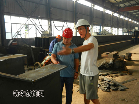 贾翔夫每天的第一个任务,就是找公司的总工程师聊天,一来汇报前一天的工作进展,二来讨论在车间工作中遇到的实际问题,共同寻找解决问题的方法。在一个周日的早上,贾翔夫照例向总工程师汇报工作,在交流的过程中,贾翔夫了解到云南某钢结构公司的一项巧妙构思,使得设计的新型构件在承载力保持不变的情况下节省了20%的用钢量,并帮助公司成功申请了国家发明专利。“总工程师希望我们可以从中受到启发,做出创新成果。正是他细心的发现,才让我们的其中一个实用新型专利浮出水面。”贾翔夫感动于公司员工这种爱岗敬业的精神,同时也学会尊重劳动岗位上的每一个人。“他们的专业知识或许没有我们研究生多,但丰富的实践经验却是我们需要学习的宝贵财富”。贾翔夫少说多做,带着“行胜于言”的清华传统,穿梭于充满无限探索可能的工厂生产线。