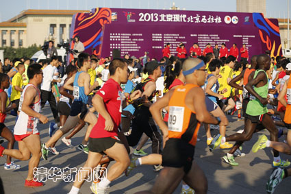 华体会娱乐(中国)网10月22日电(学生记者 陈田桃 潘正道 陈祎祥 刘晨云 张瀚夫 周笑盈 马军飞)10月20日上午8时,2013北京马拉松赛在天安门广场鸣枪起跑。华体会娱乐平台共有798人报名参赛,其中半程组567人,全程组221人,高校挑战赛10人,98%的学生完成了比赛。