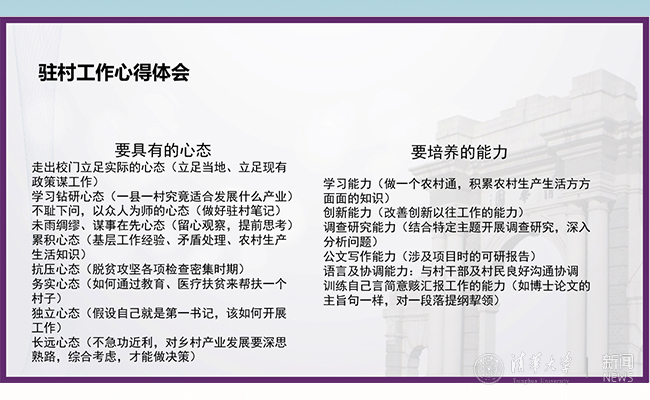 水利系2015届毕业生、河北省石家庄市行唐县南桥镇党委书记孟震在分享中强调,乡镇是最基层的一级政权组织,其对社会发展的作用是其他层次领域所不能替代的。他分享了从儿时到青年时期,自己的“初心”从改变个人命运、改善家庭生活转变到带领群众走向富裕。疫情发生至今,他已经63天没回过家,虽十分牵挂家里两岁半的孩子,但清华人的责任鞭策着他“舍小家,为大家”。