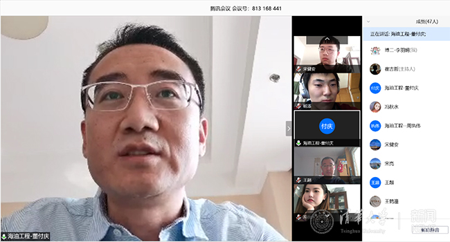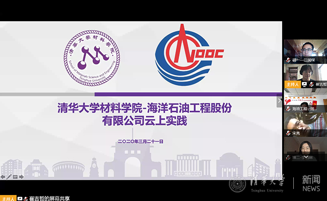 董付庆在致辞中充分肯定了材料学院组织开展的“云上实践”活动,并介绍了海油工程的重要成果。董付庆表示,校企合作非常重要,疫情期间,通过线上会议的形式,大大拉近了清华研究生同学和海油工程的联系,实现了直接的交流,期待和清华学子在疫情结束后有更多的实践交流机会。
