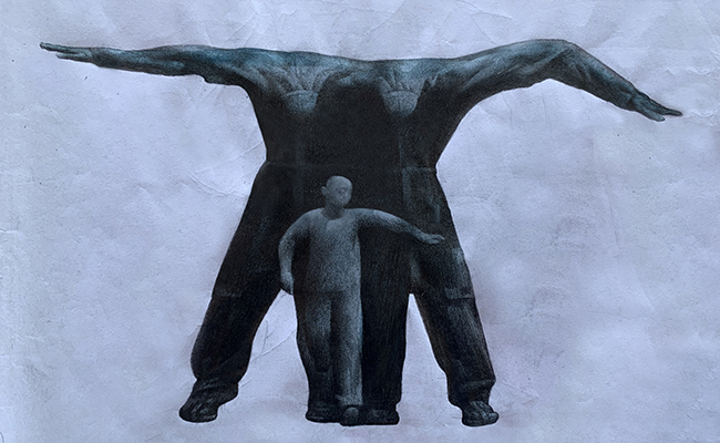 《创作构图训练》课程是美术学院雕塑系项目制研究生《数字技术与空间环境雕塑创作项目》的基础课程。课程时长为1-6 周,授课教师是马文甲老师。内容分为具象构图训练、抽象构图训练、观念性构图训练三部分。具象构图训练前期集中理论讲授,对视觉语言基础进行分析,研究视觉语言中点、线、面,以及各种造型要素。通过二维平面构图、三维立体构图、雕塑构图逐步深入讲授。在雕塑构图中对经典视觉案例进行分析,研究人类视觉经验,分析构成要素。前期实践开始于草图绘制,内容包括单人构图训练、双人构图训练、三人构图训练。在训练逐步深入的基础上加深学生对理论的理解,进入主题性创作。在主题性创作中学生根据自己的创作寻找构图,完成对主题的表达。