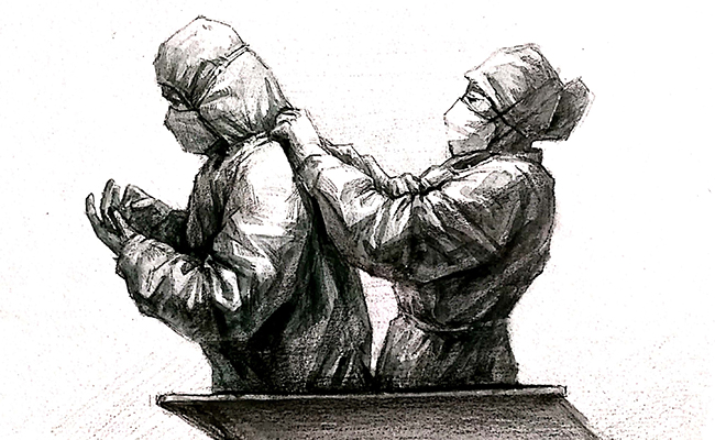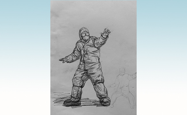 此次主题性创作以《逆行者》为主题,同学们利用创作构图训练的知识进行创作,表达面对当下疫情的真实感受,在线完成了一次特殊的“云创作”。