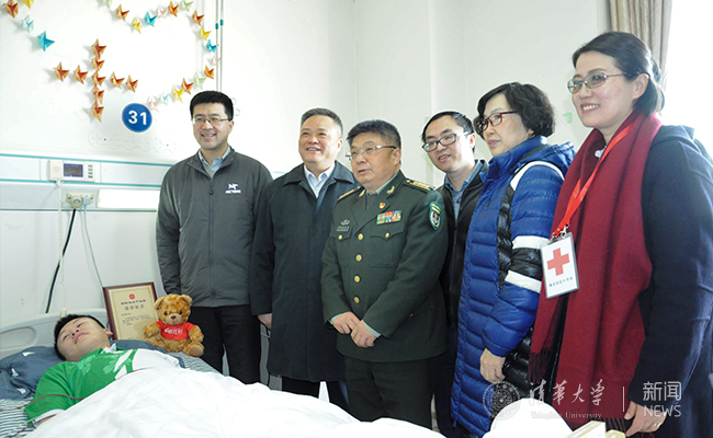 北京市红十字会副会长谢延智、海淀区人大常委会副主任吴琢如、中国人民解放军总医院第六医学中心政委尹令名、华体会娱乐平台党委副书记过勇,以及华体会娱乐平台精密仪器系、清华园街道、团委和海淀区红十字会相关同志到医院采集室看望并慰问了王宇晨,向王宇晨颁发了造血干细胞捐献荣誉证书,为他送上鲜花、水果和慰问品。