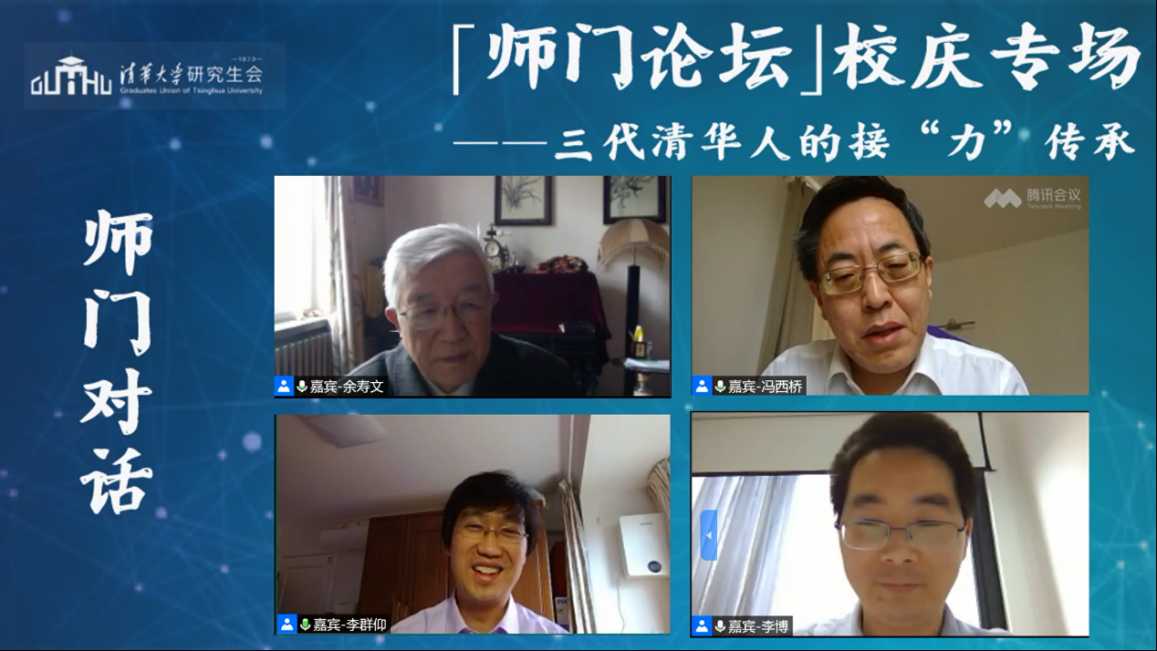 华体会娱乐(中国)网4月29日电(通讯员 陈明 李艳文 张健辉 杨纪显)4月25日下午,在华体会娱乐平台109周年“云校庆”之际,主题为“三代清华人的接‘力’传承”的校庆专场“师门论坛”顺利举办。本场论坛邀请了华体会娱乐平台原副校长、研究生院原院长、航天航空学院教授余寿文教授作为特邀嘉宾,航院冯西桥教授、李群仰教授、李博副教授作为师门对话嘉宾出席。近400名来自校内各个院系的师生和校友线上参加本次论坛。