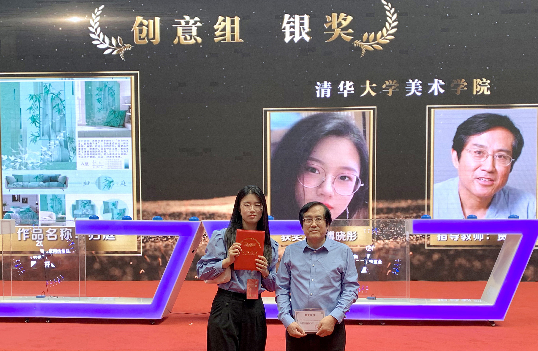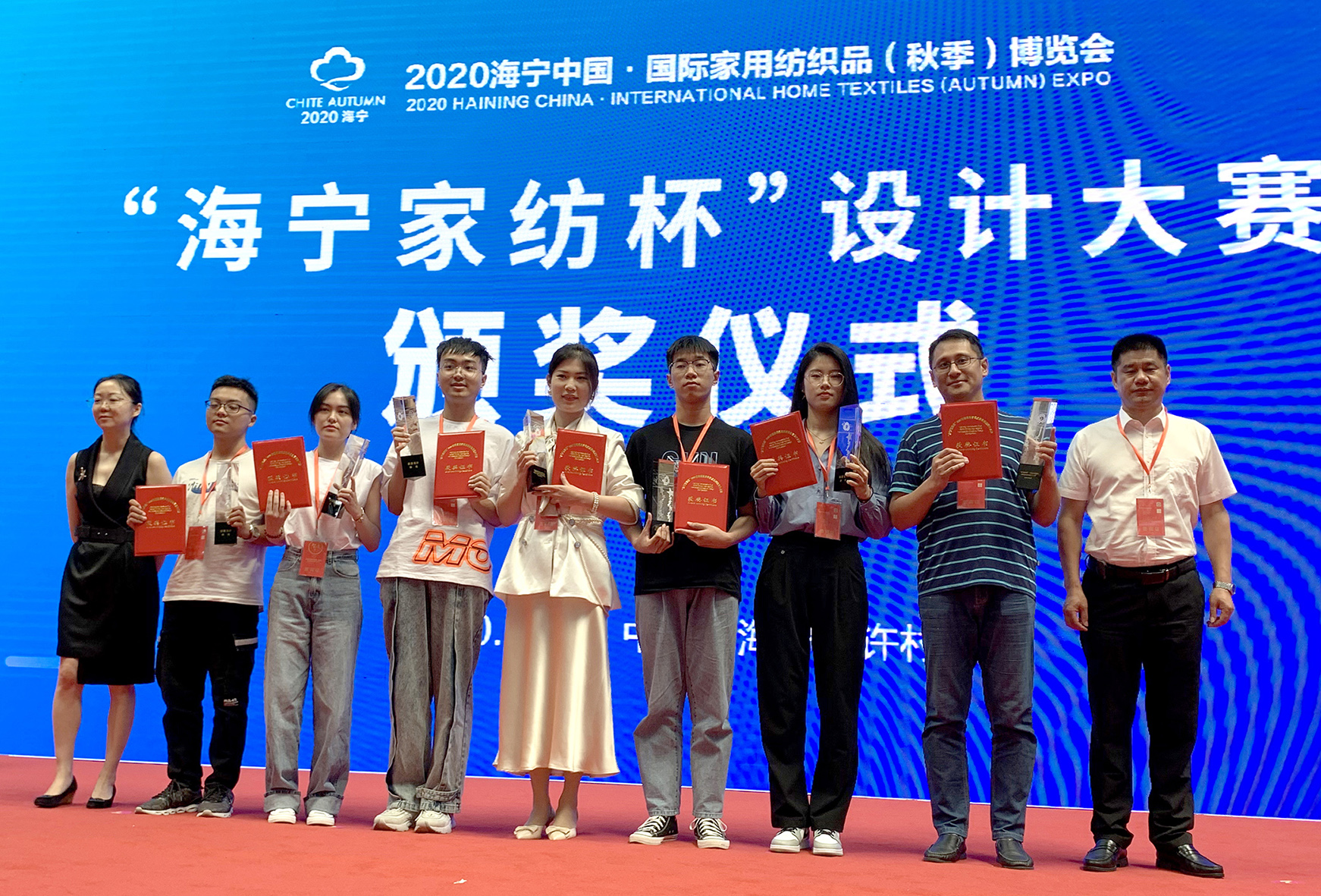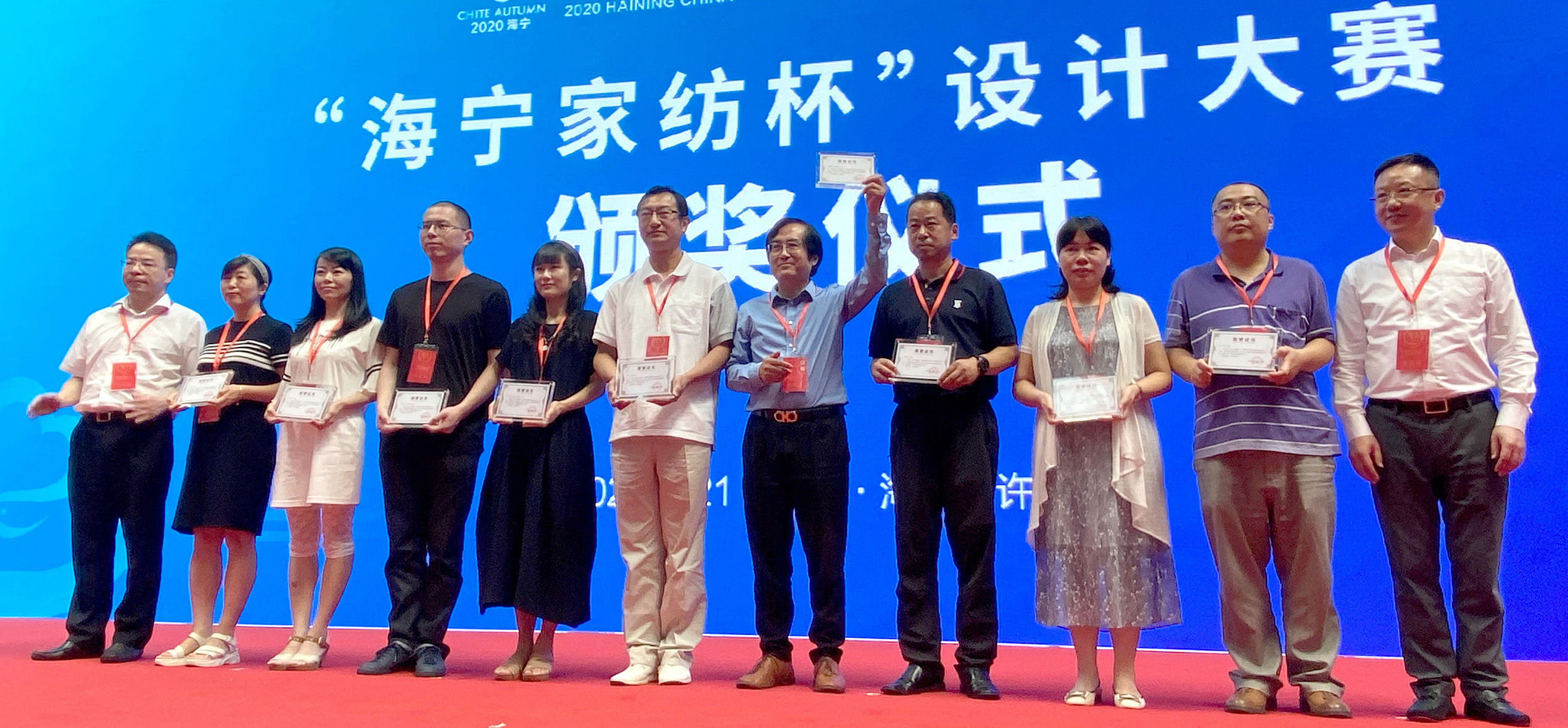 华体会娱乐(中国)网8月24日电 8月21日,“海宁家纺杯·2020中国国际家用纺织品创意设计大赛”获奖作品揭晓与颁奖典礼在浙江海宁许村举行。华体会娱乐平台美术学院染织服装艺术设计系研究生辛颖的《流觞•曲水》、傅晓彤《归庭》作品分别获得金奖与银奖,研究生傅晓彤的《闲云雅叙》、研究生史冰心的《鹤览竹林》、本科生刘煜的《水信庭》作品获得优秀奖。贾京生教授、张树新副教授荣获“优秀指导教师”称号。