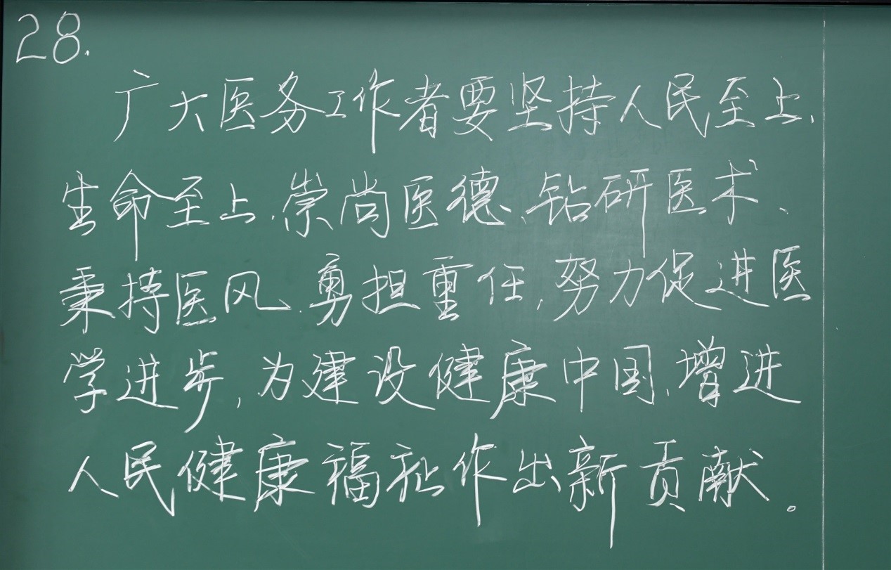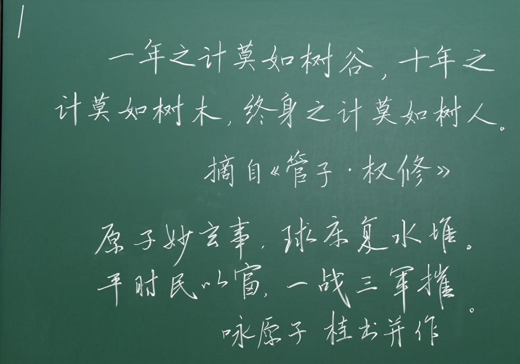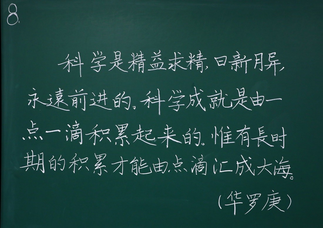 在今年疫情防控的形势下,再次看到粉笔板书,让大家感到格外亲切和感动。提倡粉笔板书的书写是一种坚守,也是一种文化的传承,比赛充分展示了老师们的硬笔书法艺术水平,为进一步提高我校教职工粉笔板书技能起到了积极推动作用。