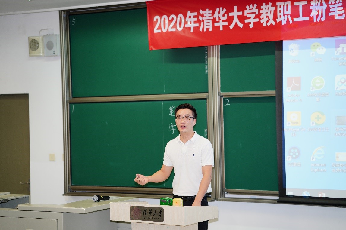 杜鹏飞表示,板书比赛是书法协会每年的三大活动之一,每届都会特邀一位校外嘉宾担任评委。今年参赛教师总体水准较高,水平比较接近。清华的粉笔板书比赛在高校中很受关注,产生了很好的示范效应。杜鹏飞认为,教师在板书的一举手、一投足中都影响着我们的学生,希望能把书法的教育和传播做得更好。