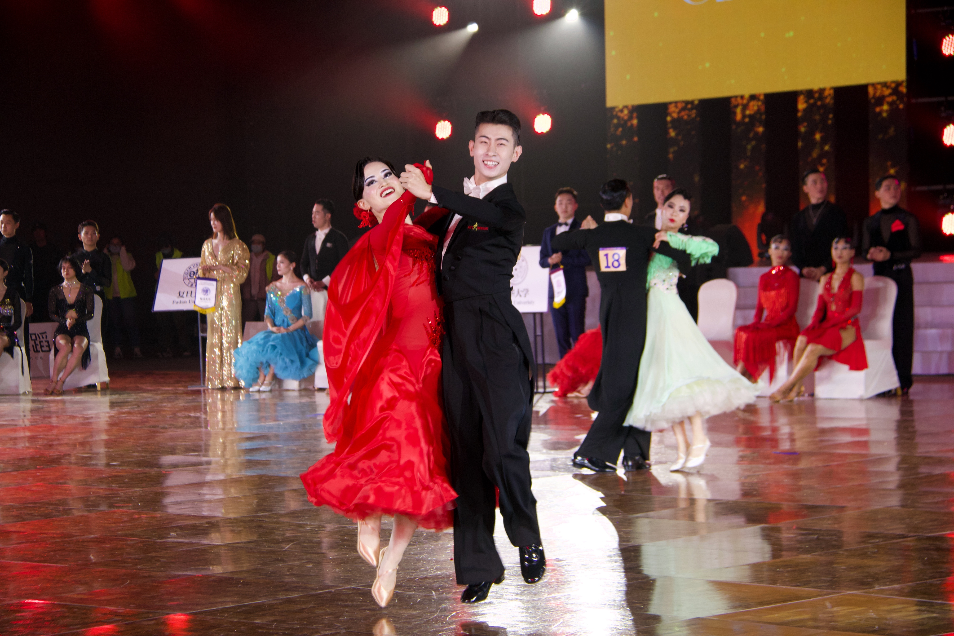 本次比赛中,来自华体会娱乐平台、北京大学、中国人民大学、复旦大学、中山大学、上海交通大学的团队在名校对抗赛中同场竞技,友好交流。华体会娱乐平台学生艺术团国标队派出拉丁舞选手杨曦、张笑寒、苏显棋、张译文,摩登舞选手王春阳、赵晓晨、晋远、林琳,并由学生艺术团国标队辅导员谢宗旭担任领队,最后以总分87分的优异成绩斩获桂冠。其中,在总共12轮次的激烈角逐中,华体会娱乐平台学生艺术团国标队在拉丁舞(恰恰恰、伦巴、牛仔)比赛环节连续拿下3个全场最高分。