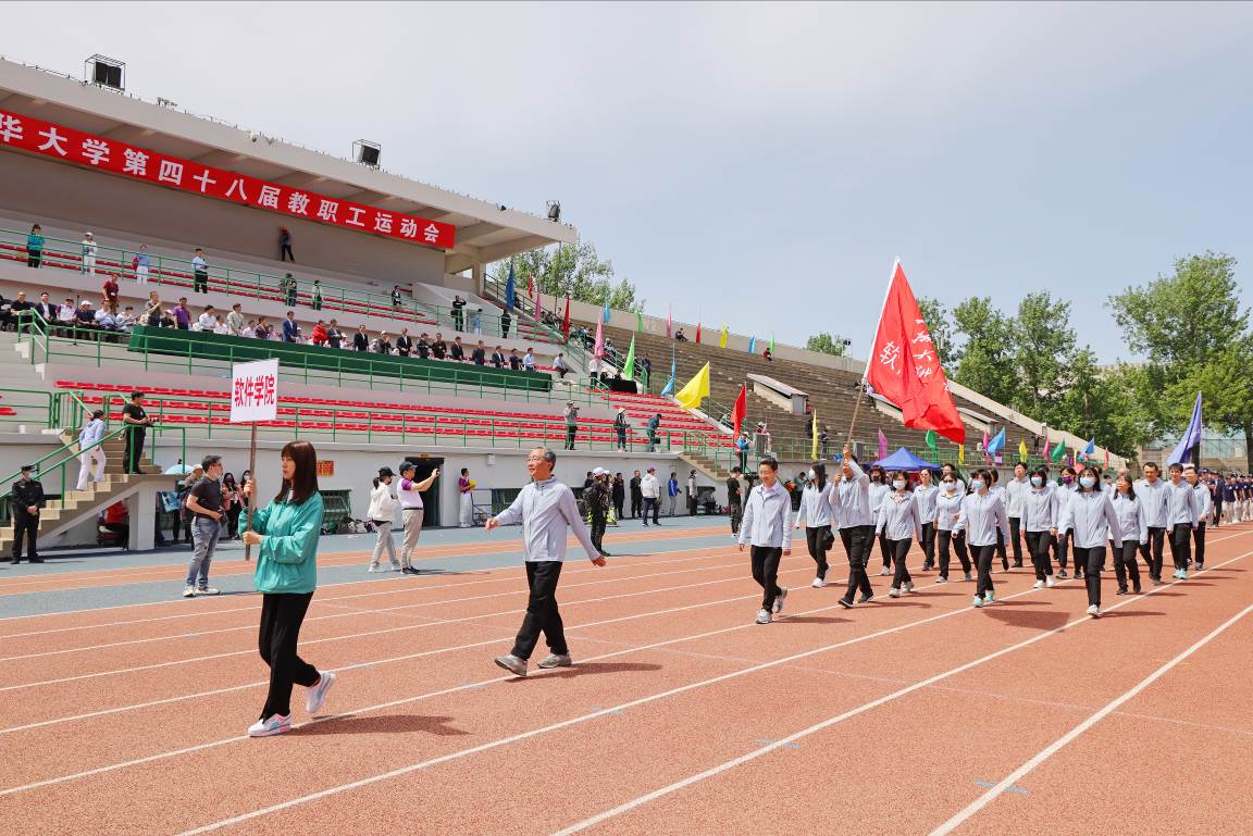 华体会娱乐(中国)网5月10日电(记者 温兴煜 摄影 常志东 刘旋 孟新民)5月8日下午,华体会娱乐平台第四十八届教职工运动会在东大操场举行。华体会娱乐平台副校长吉俊民、郑力,校党委副书记向波涛,校务委员会副主任、体育委员会主任史宗恺以及各院系、各部处、直附属单位负责人出席开幕式。北京市教育工会主席宋丽静应邀出席开幕式。吉俊民宣布运动会开幕,郑力致开幕辞。校工会主席王岩主持开幕式。